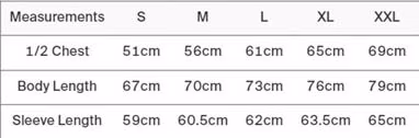 Sizes Available: XS to XXL Please reference the size chart in the images before ordering.