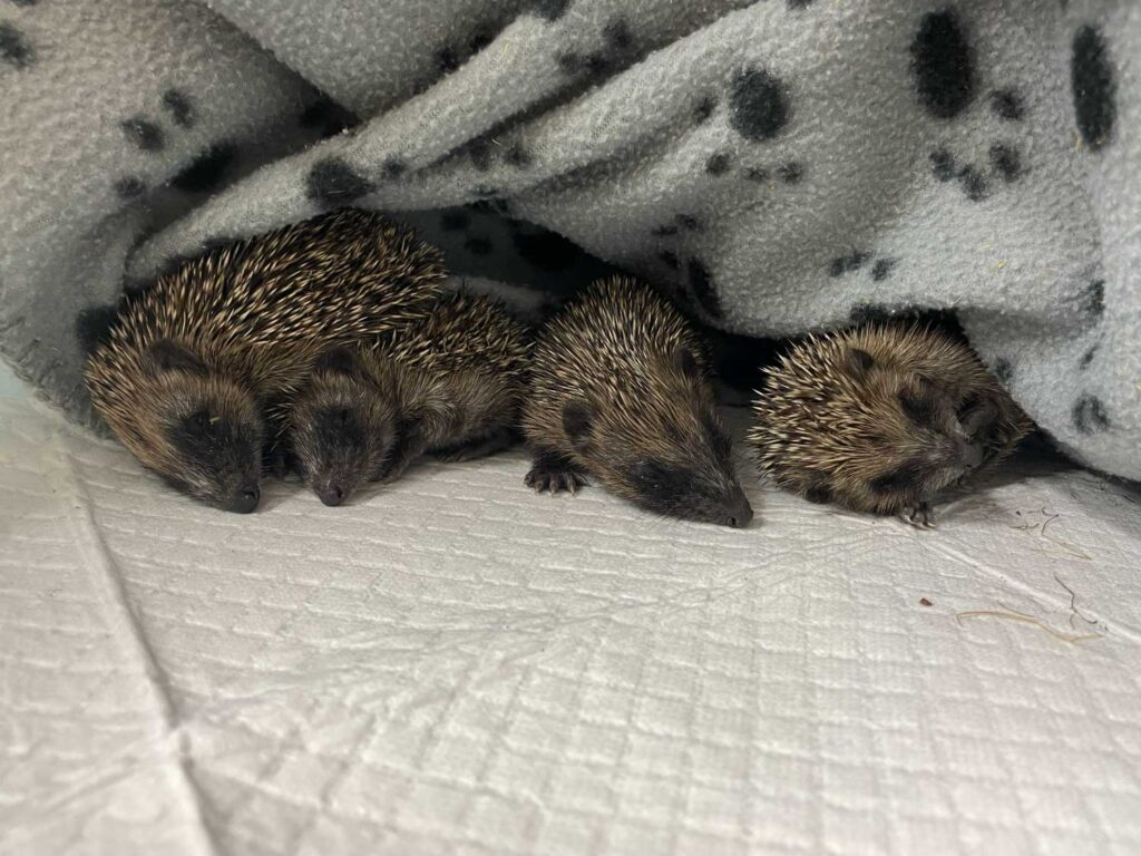 The beginning of this little prickle of hoglets’ journey is enough to break your heart. A passer-by noticed a still, small form on the roadside, an adult hedgehog, her life tragically cut short. Just a few feet away, huddled together in confusion, were her four tiny offspring. Somehow, against all odds, they had avoided the same fate.