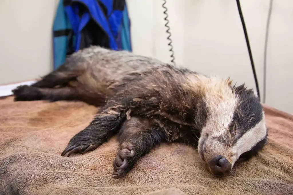 The badger had been shot in the leg, leaving its bones in pieces. Not only that, but there were stamp marks on his head, causing massive damage to the teeth, gums and tongue. After all of this suffering, he had then been dumped on a road, in the path of on-coming traffic.