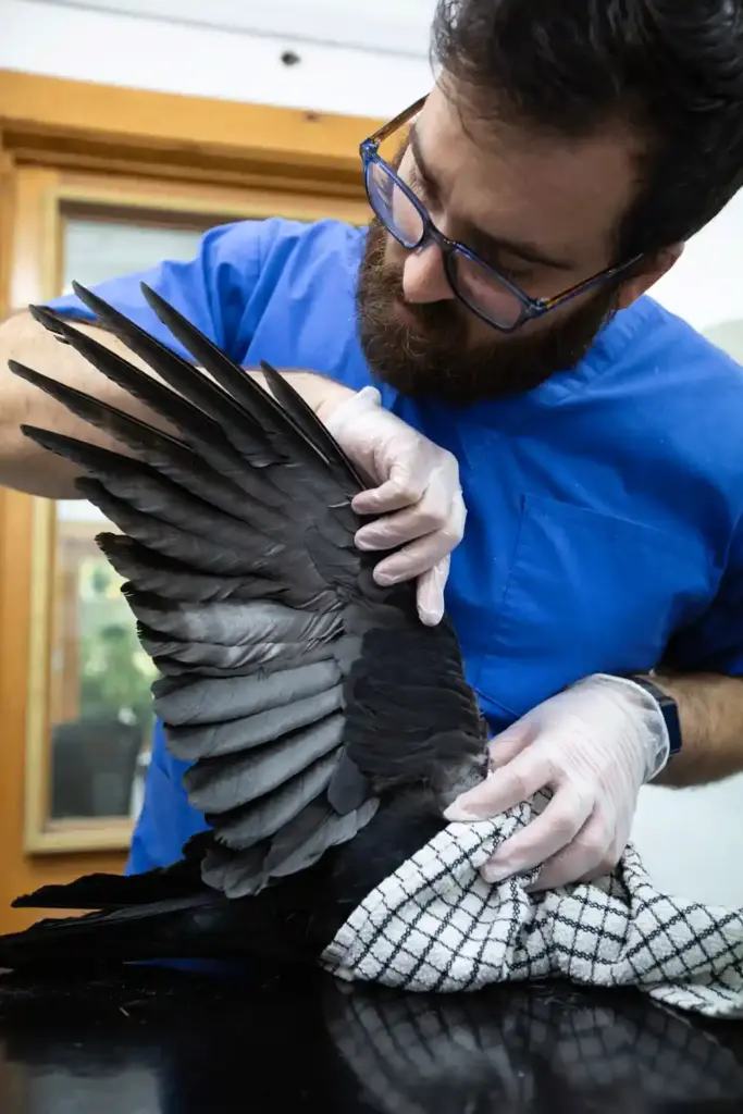 On further assessment, vet, Marco also discovered bruises around the birds hocks and wing joints but was thankfully, able to move both legs and feet properly, and there were no obvious fractures.