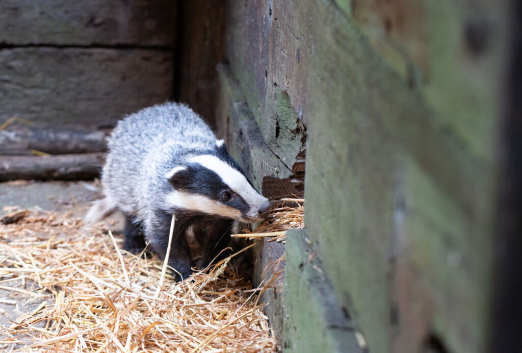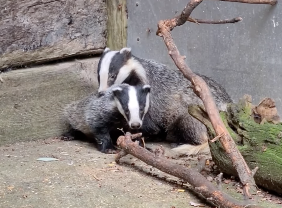After some initial nerves, more from us than the badgers, Dinky and his new friend were quick to get acquainted, and after just a few minutes the larger badger cub was grooming Dinky and showing him around his temporary home.