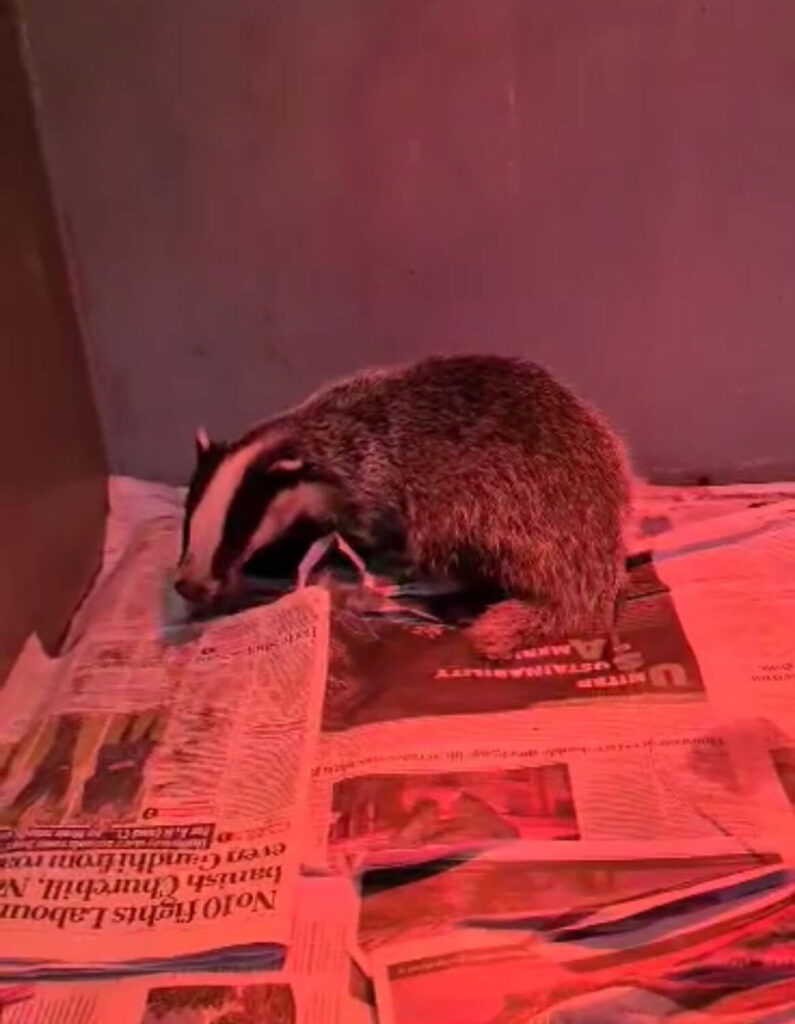 Dinky arrived in care having been rescued by experienced badger rescuer, Pete, after the young male was found unresponsive on the caller’s driveway. Dinky was in a seriously worrying state, and our vet, Meriem, had her work cut out for her since his arrival.
