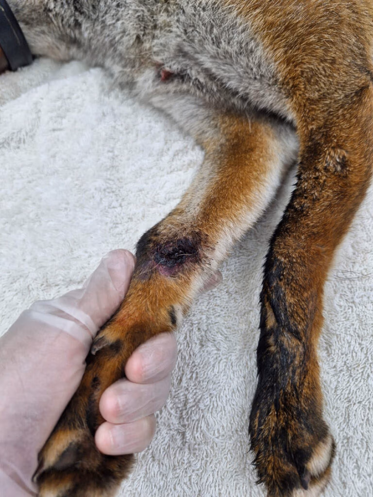 But help had arrived. Carefully, our team set to work cutting away the strands of netting that had become a vice around their bodies. Every snip was made with the utmost care—one wrong move could have caused further injury. At last, the foxes were freed and rushed straight to our veterinary hospital.