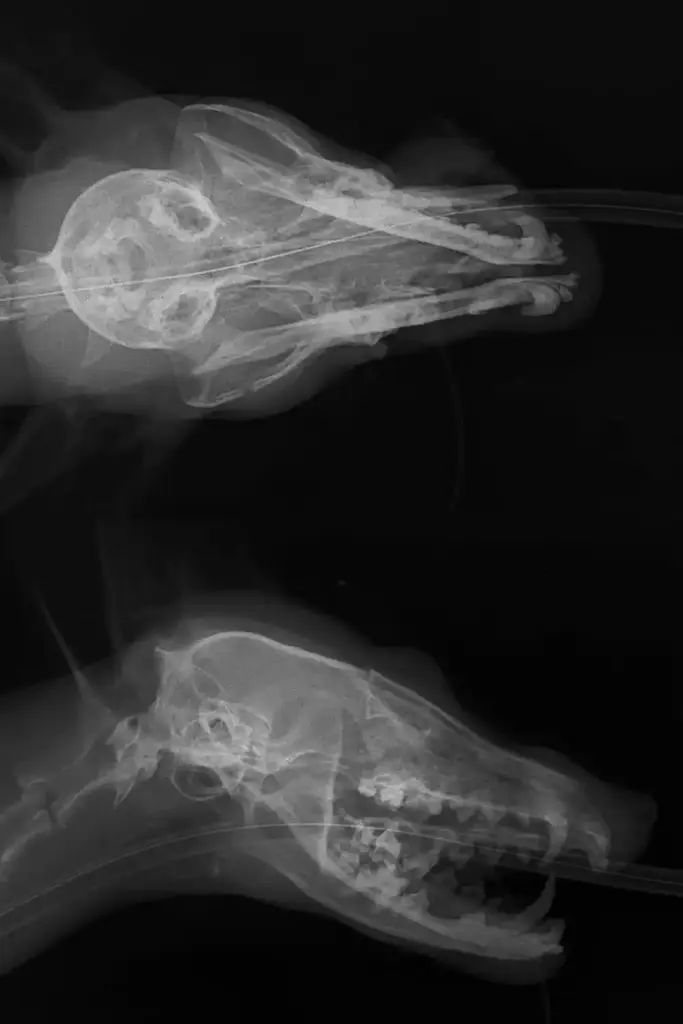 Despite it being gone midnight, Marco (one of our vets) set to work clearing the airways and stabilising her condition before taking an x-ray of her head.