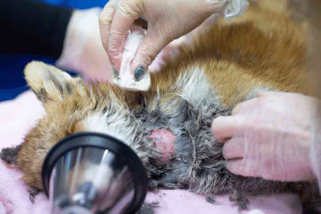 Sadly, not our first and unlikely our last, “Jar-Jar” fox was reported to us four days before his rescue, as, unfortunately, he was still incredibly mobile, making capture difficult.