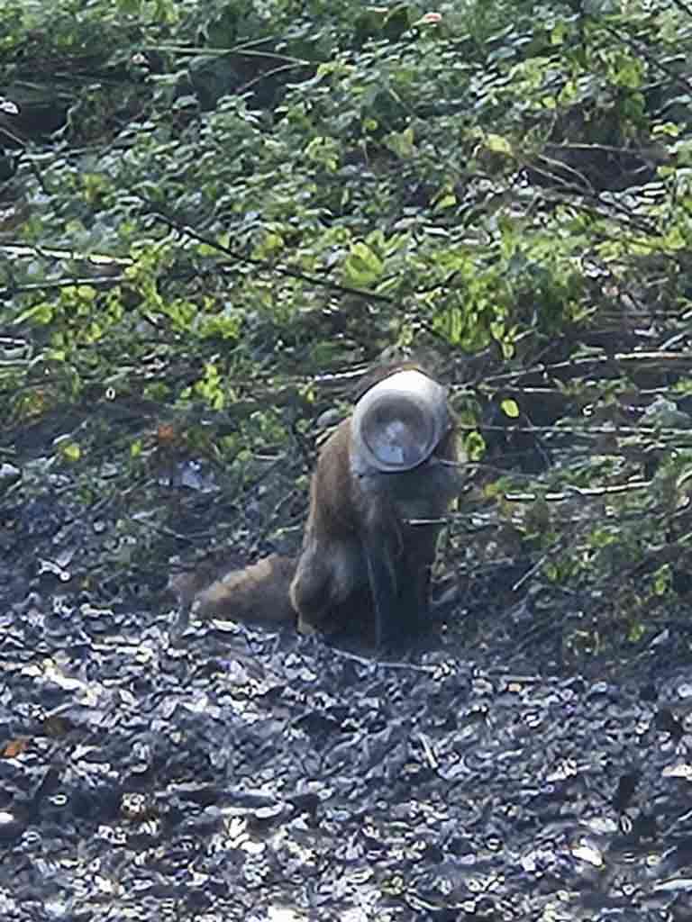 Having had no food or water for several days, Jar-Jar was, understandably, weak. After climbing through some brambles, our rescuers were able to secure Jar-Jar, remove the jar and transfer him over to the hospital.