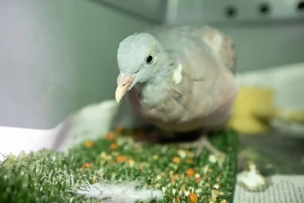 But we hadn’t lost hope; being a youngster, and wood pigeons being a social species, we were able to place Pingu with other wood pigeons in an aviary. The first few days Pingu seemed a little confused, but, just a week after being in an aviary with his own kind, he finally picked up the proper social behaviours and learnt to fend for himself.