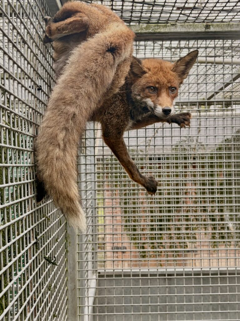 He was then placed in a pen so his condition could be monitored. After a few days, Glen had made an incredible turnaround, and he began to exhibit natural fox behaviour, even biting the door to his pen and climbing up the walls!