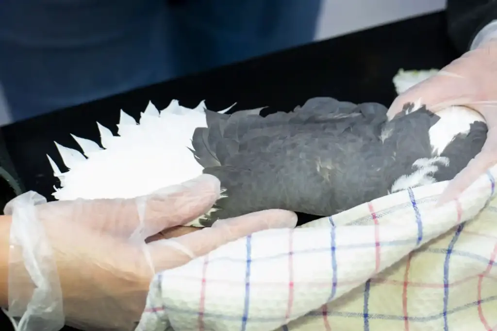 Although these feathers will eventually moult naturally, this process can take a long time and the stress of extended captivity needs to be minimised.