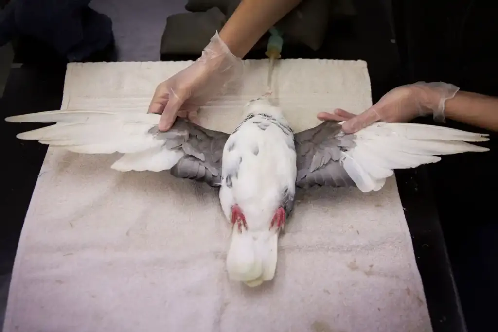 This poor pigeon was the victim of horrific cruelty. According to eyewitness reports, he was captured by a group of children before they cut off the feathers on both wings with a pair of scissors. If this wasn’t enough, they then repeatedly threw him into the air to ‘see if he could fly’.