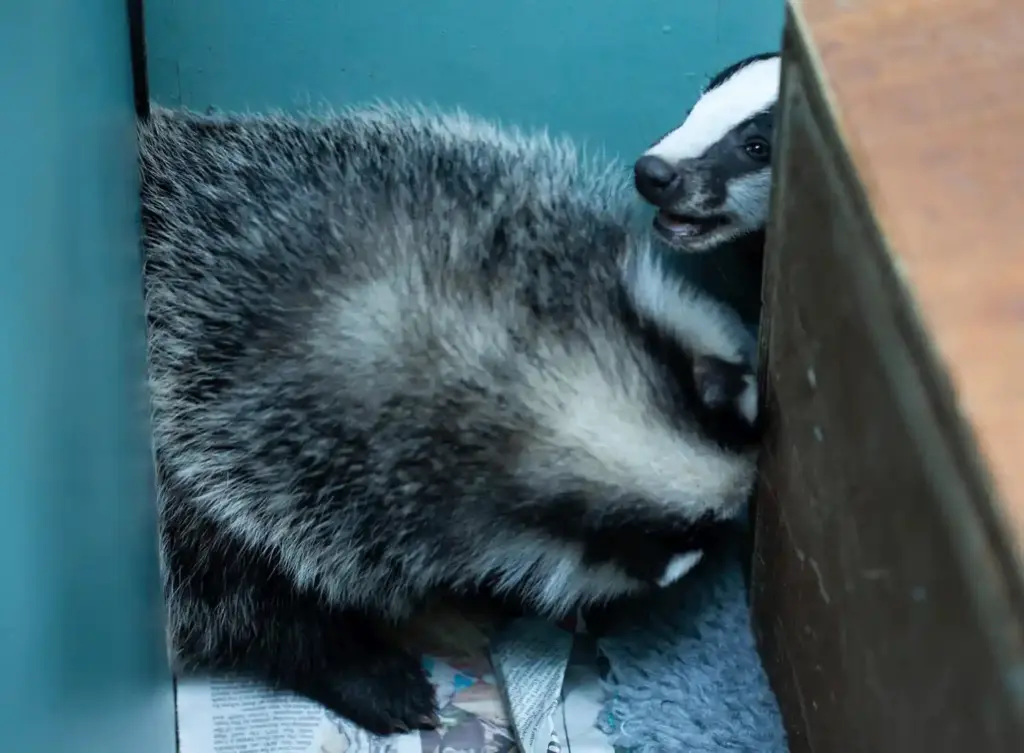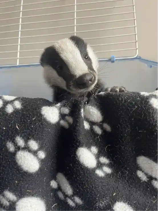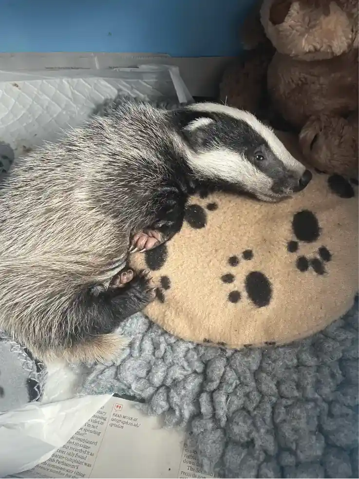 The finder had placed tiny Sandi into something warm, next to her sett, and monitored her via a trail camera, in the hopes that mum would appear and take Sandi back to safety.