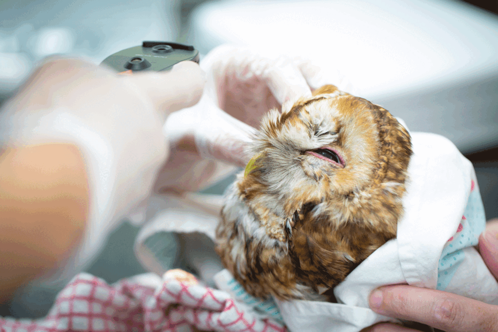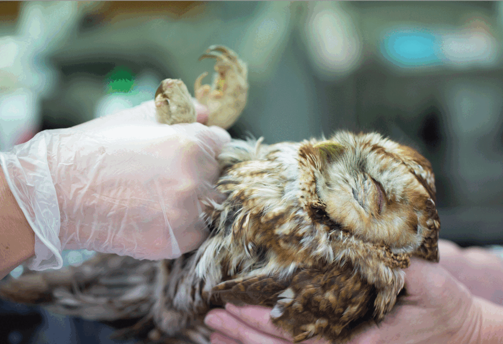 Twitter had suffered severe bruising across the entirety of his back and shoulders, and our concern quickly turned to the possibility of internal injuries. It became quickly apparent that the “playing dead” was, actually, a very poorly Owl.